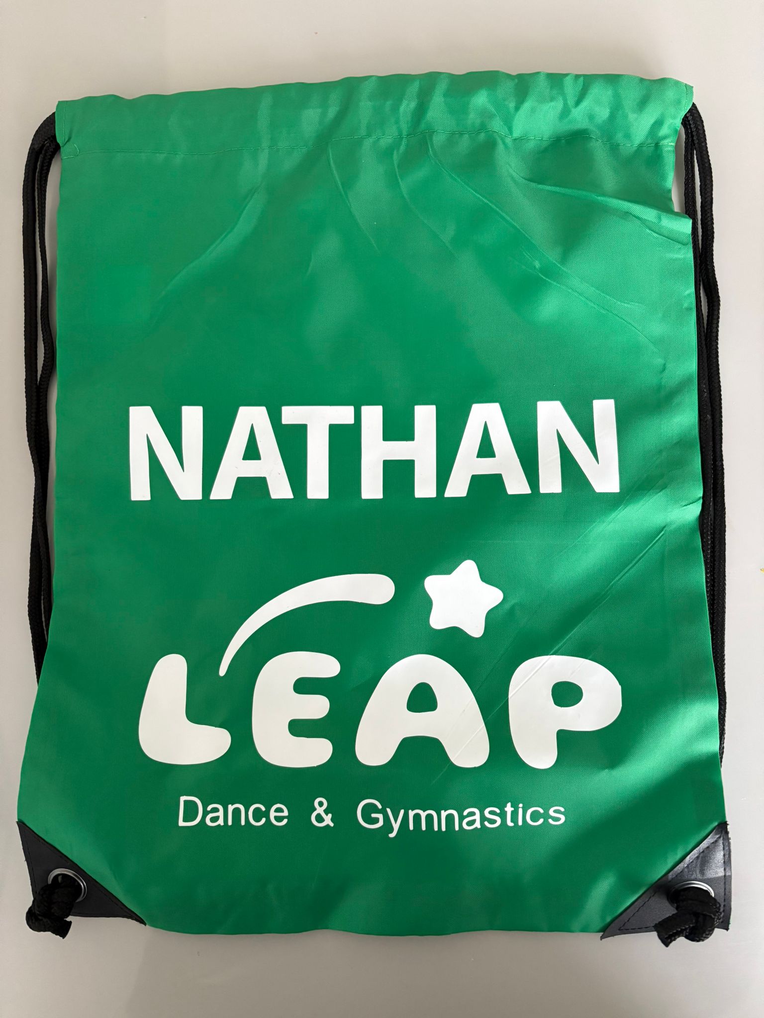 Perfect for a Christmas stocking filler our Leap Green Personalised Dance/Gym Bag